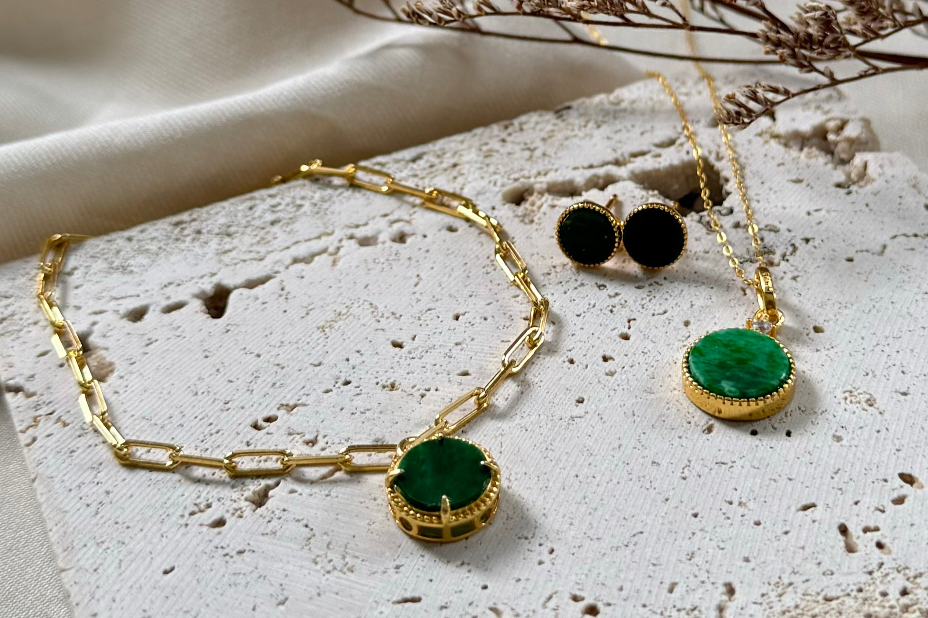 Our pieces are made with 100% natural, untreated Grade A jadeite and high-quality gemstones. We carefully select each stone for its quality and beauty, so you know you're getting the real deal.