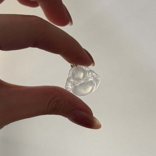 18k Gold Laughing Buddha Jadeite Pendant (Icy)