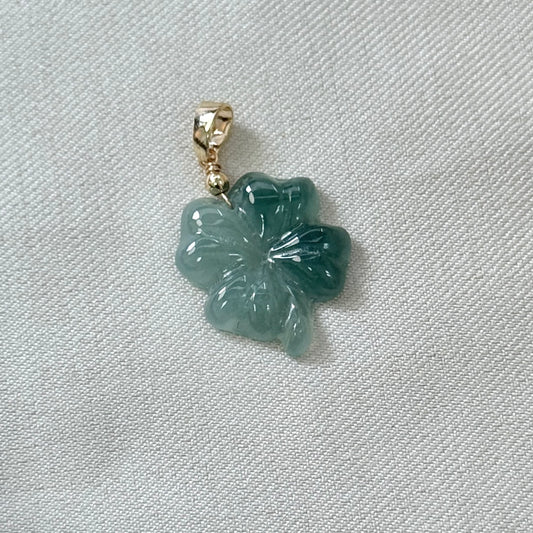 18k Gold Clover Jadeite Pendant