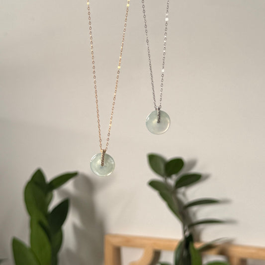 18k Gold Green Jadeite Doughnut Pendant