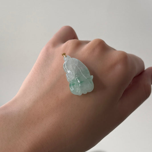 18k Gold Buddha Hand Melon Jadeite Pendant