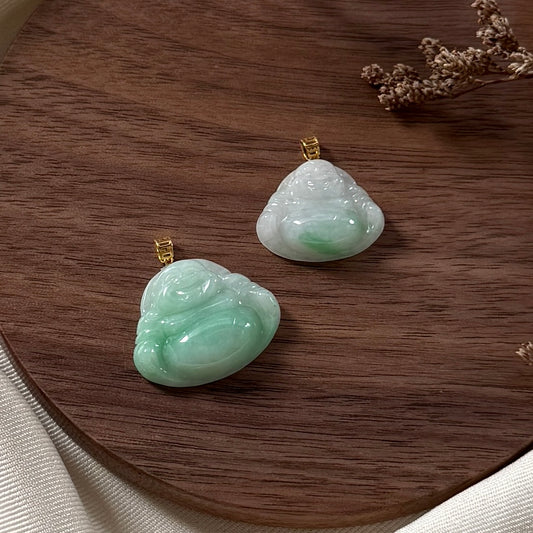 18k Gold Laughing Buddha Jadeite Pendant (small)