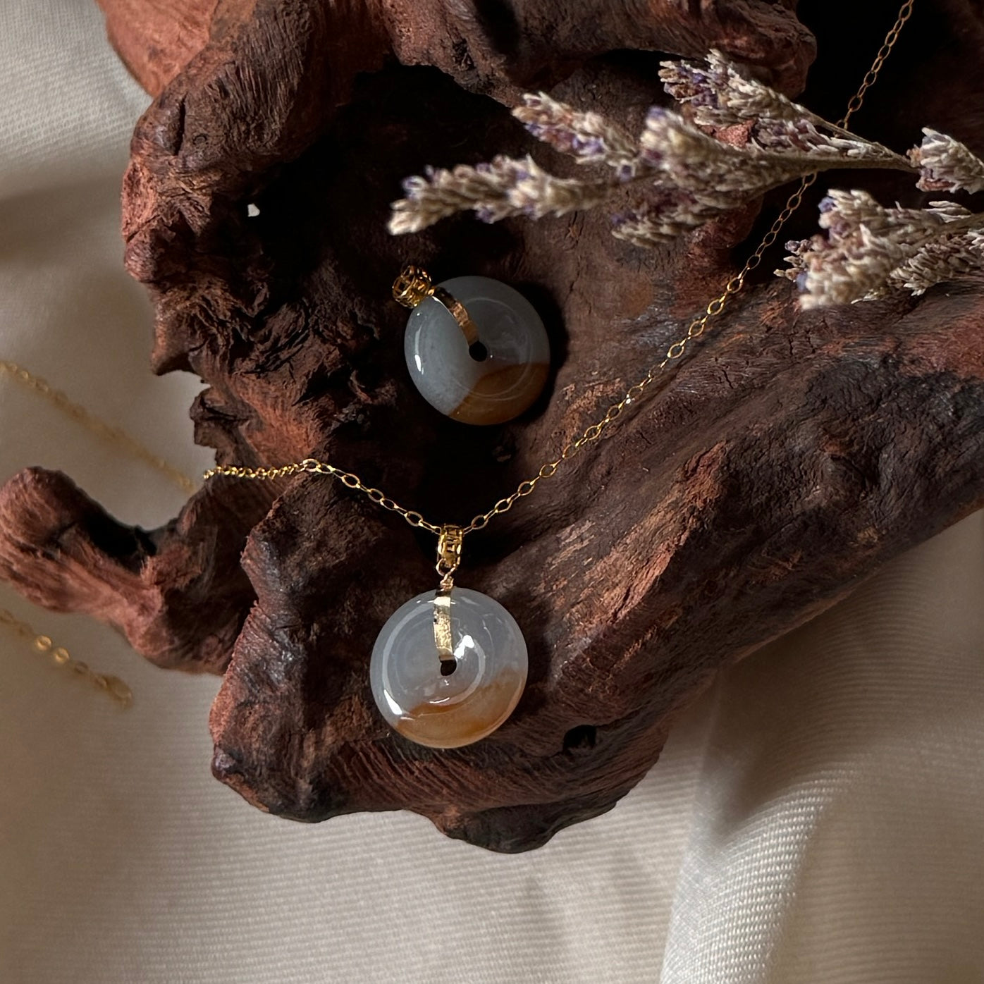 Illuminate your jewellery collection with our stunning Amber Jadeite Pendant, a captivating piece that beautifully blends elegance with nature. This pendant features exquisite jadeite discs, showcasing a translucent body with a striking amber hue that adds a warm touch.