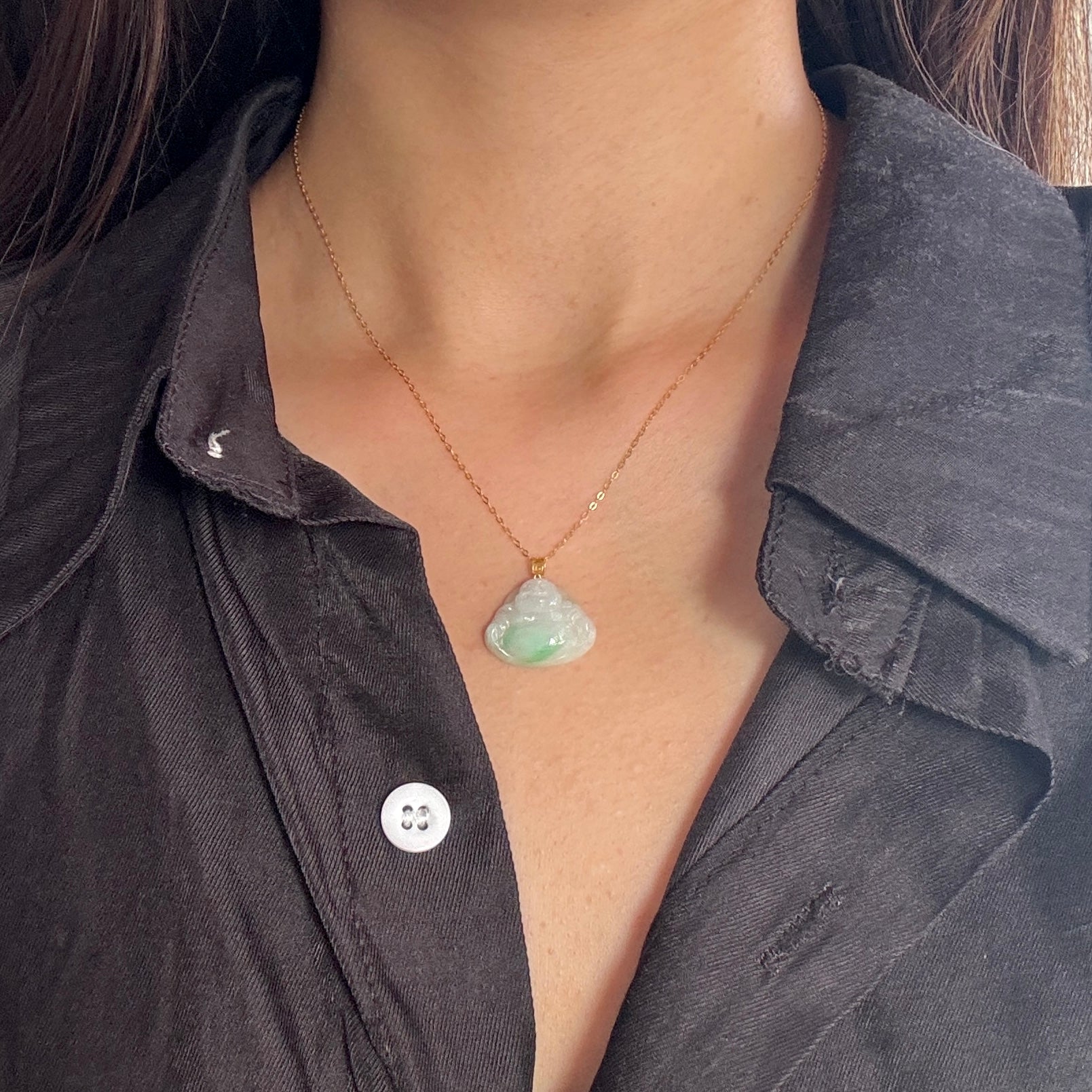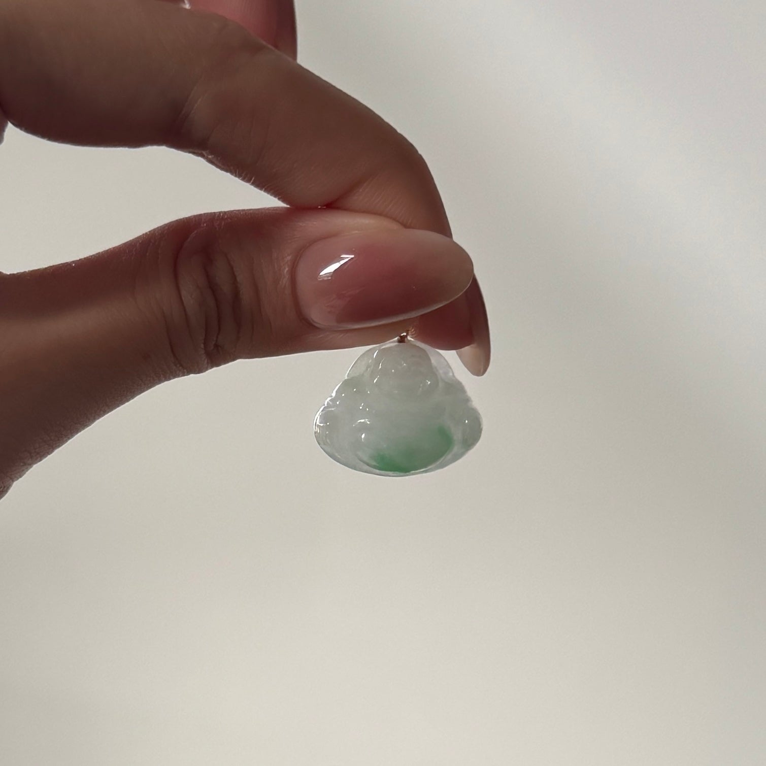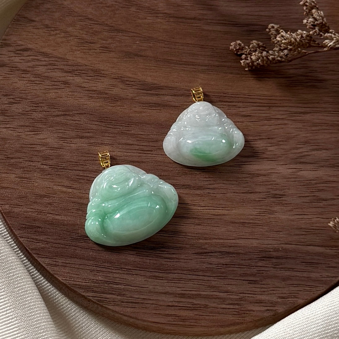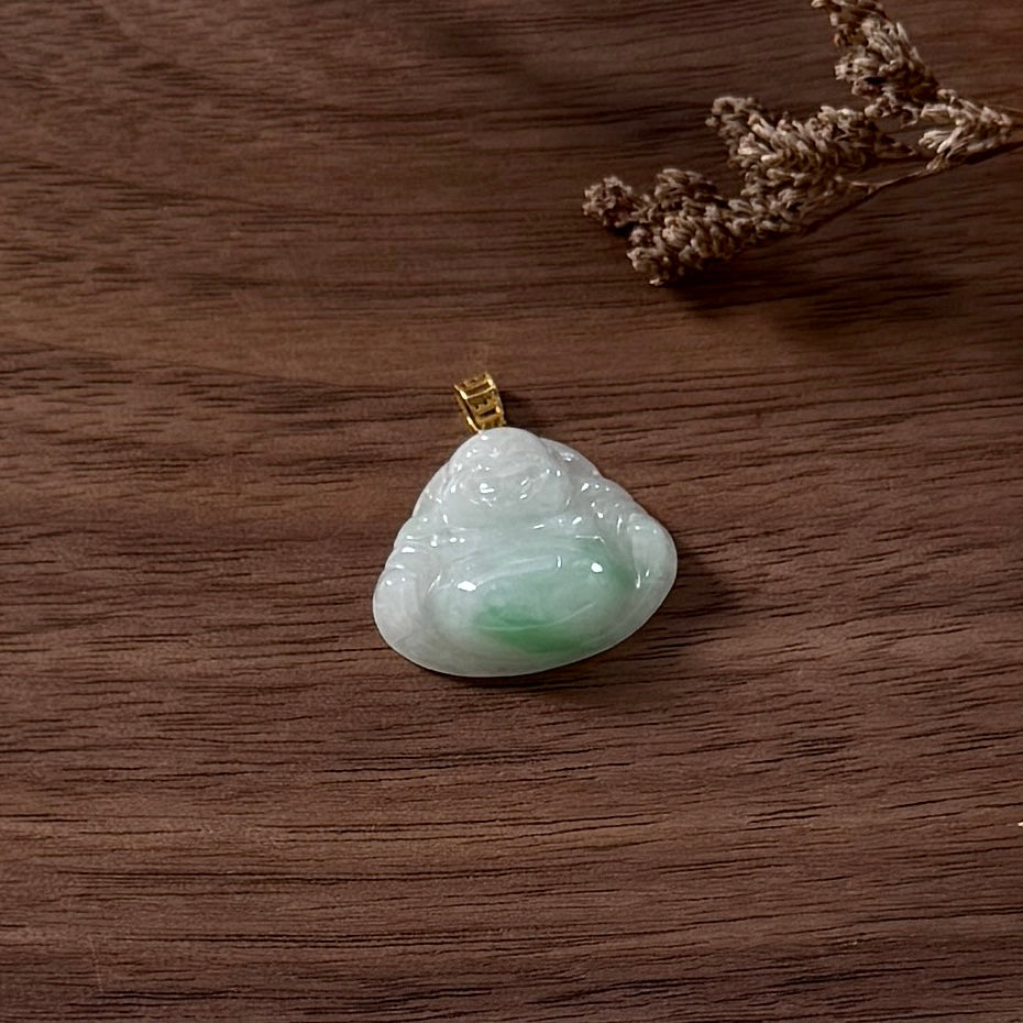 This cheerful 笑佛 (xiào fó) pendant, carved from radiant jadeite and finished with a solid 18k gold bail, captures the essence of joy, abundance, and peace of mind. With his round belly and infectious smile, the Laughing Buddha is believed to uplift the spirit and attract good fortune, protection, and light-hearted blessings.