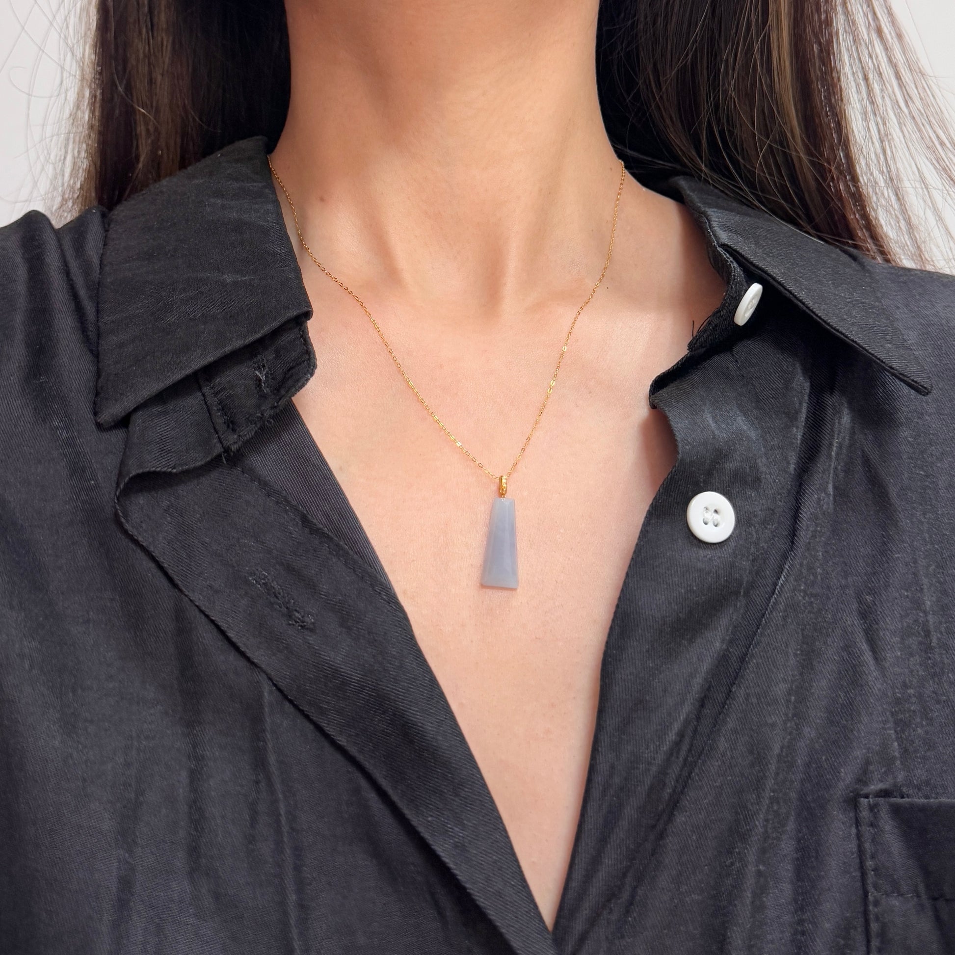 Reach new heights with the Zenith Pendant, a bold statement of individuality. Featuring a beautifully faceted jadeite tower, this pendant is accented with a diamond-studded 18k gold bail, adding a touch of subtle brilliance. Designed for those who embrace their strength and elegance, this piece is a true reflection of your highest self