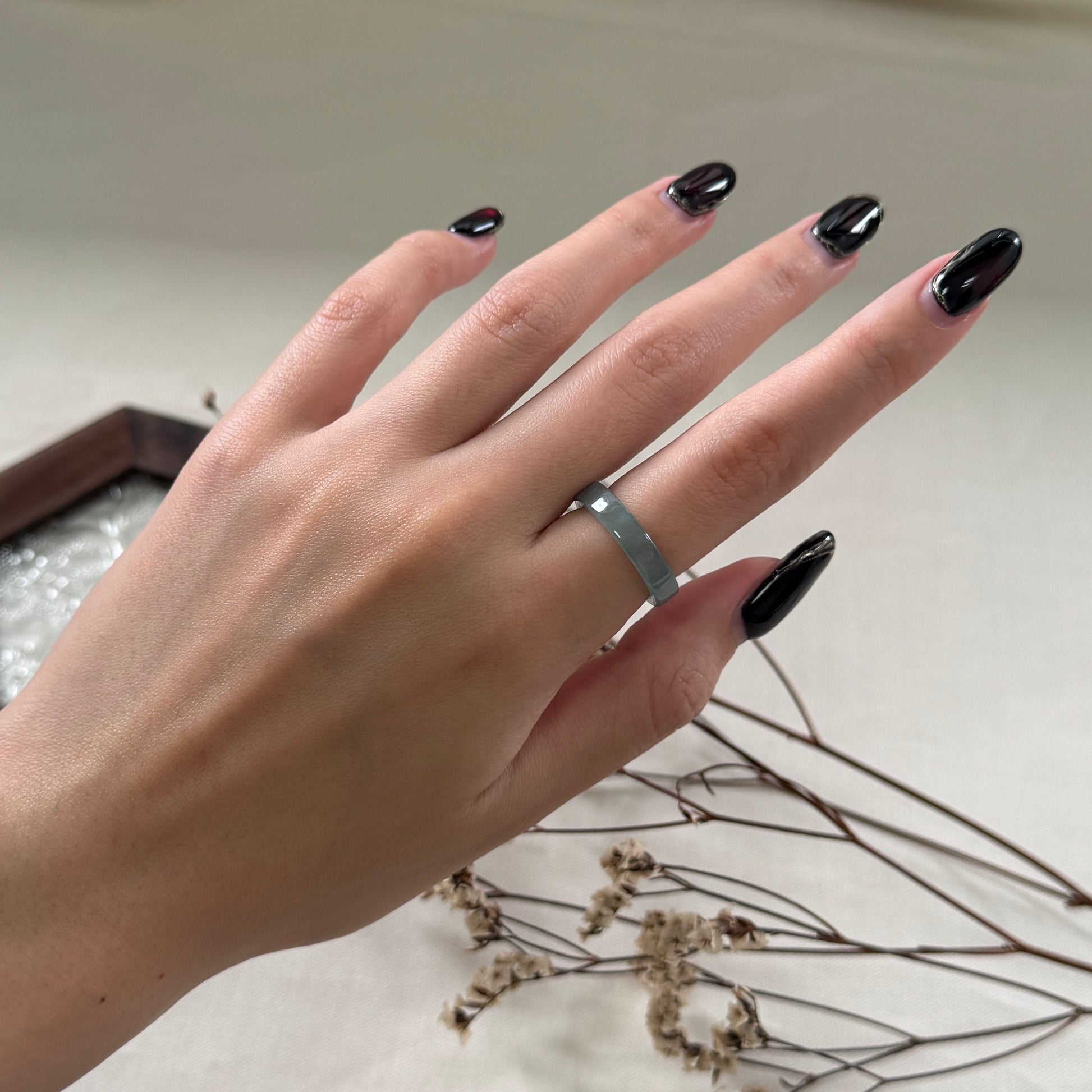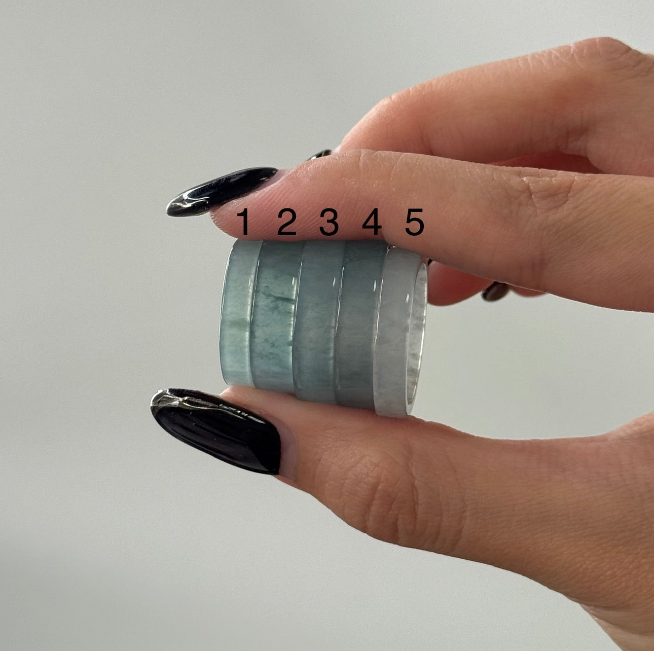 Due to the natural variation of jadeite, each ring will display subtle differences in tone and texture.