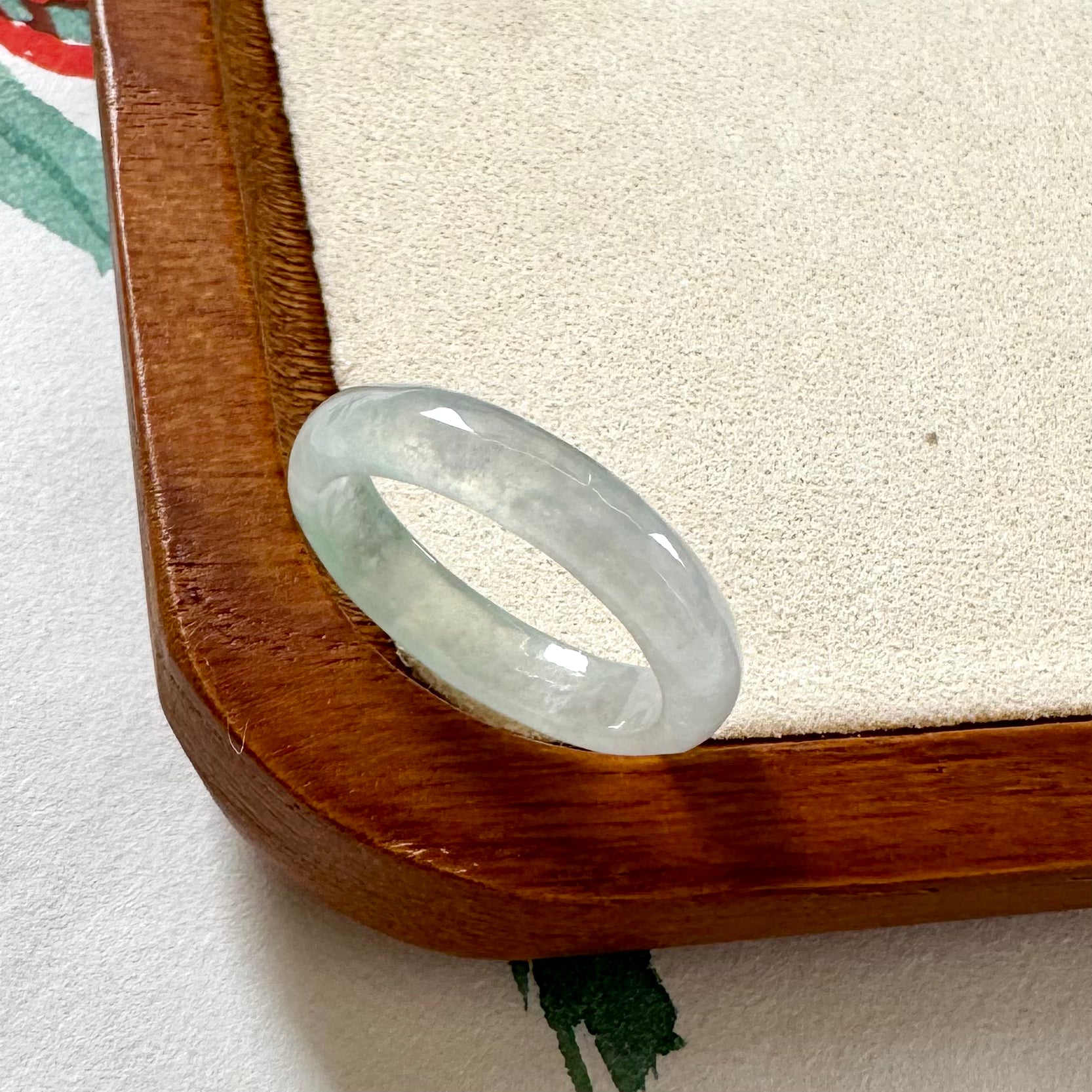 This exquisite piece showcases a delicate, icy jade with a pale green hue, exuding a calming and ethereal elegance. The jade’s translucency adds a mesmerising depth, capturing and reflecting light to create a stunning visual effect. Elevate your jewellery collection with this unique and captivating jade ring, a timeless symbol of tranquility and elegance.