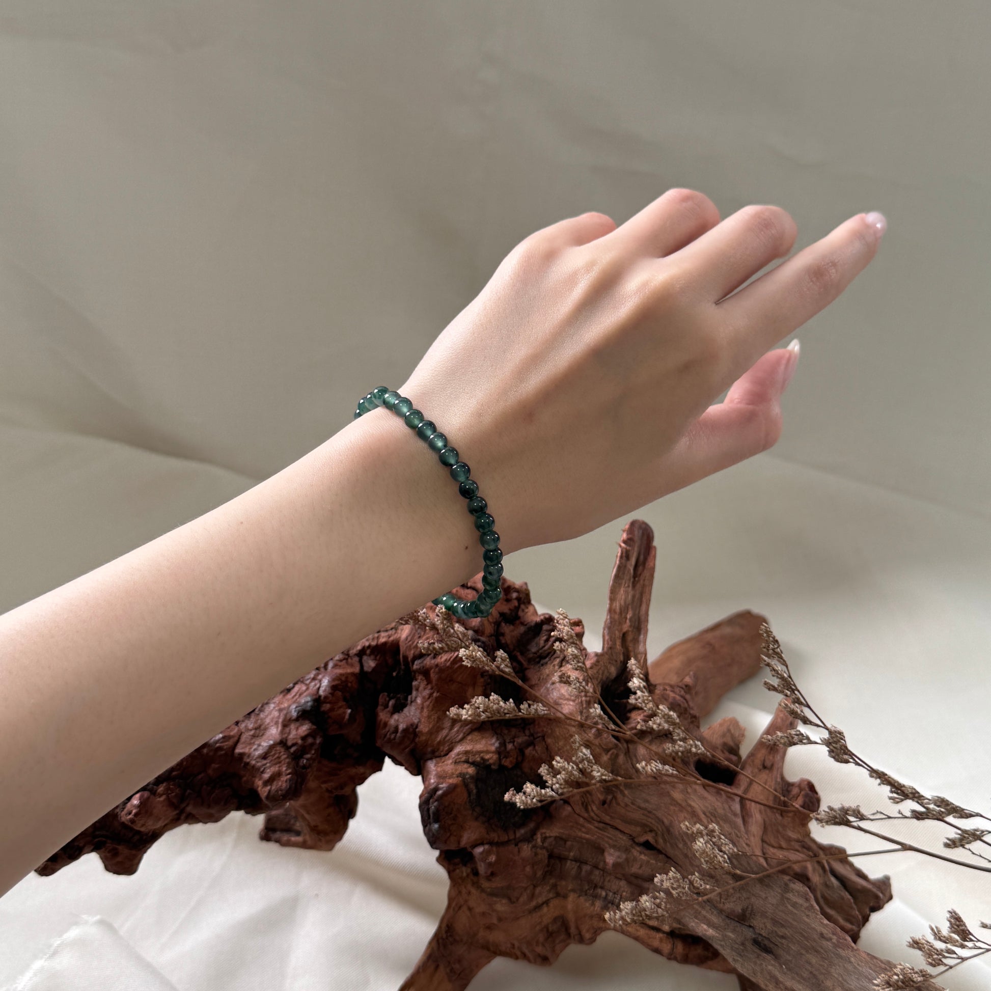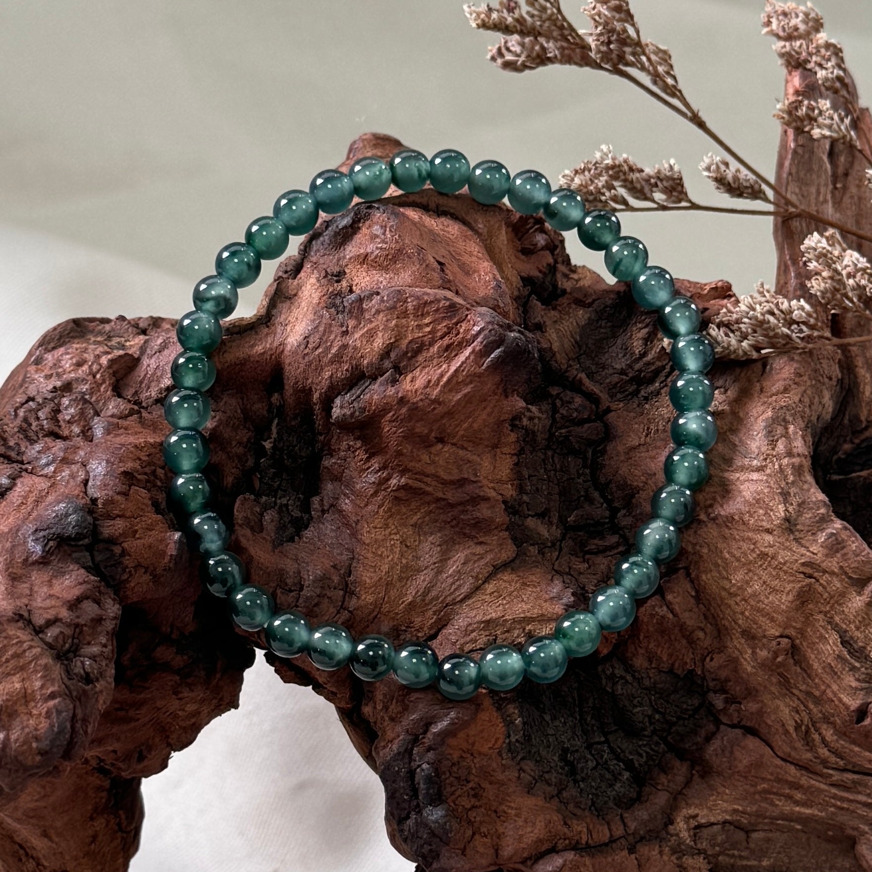 Crafted from deep teal green Guatemalan jadeite, the Cypress Bracelet draws its name from the enduring cypress tree — a symbol of resilience, protection, and quiet strength. With its smooth, translucent beads and earthy tone, this piece offers a sense of calm elegance that pairs effortlessly with any look.