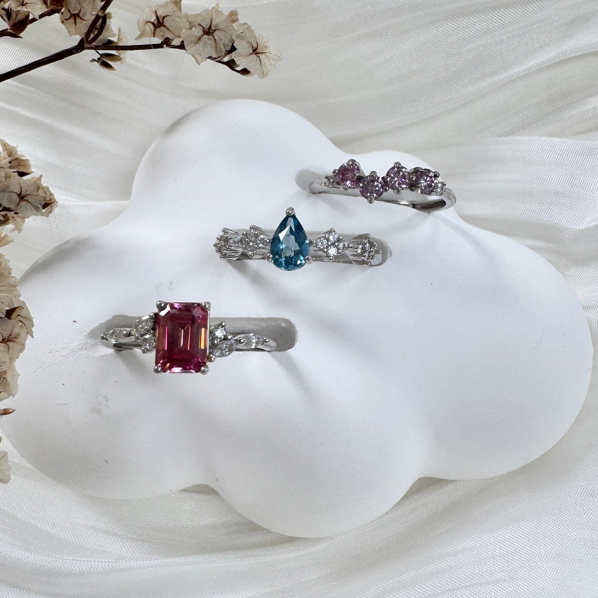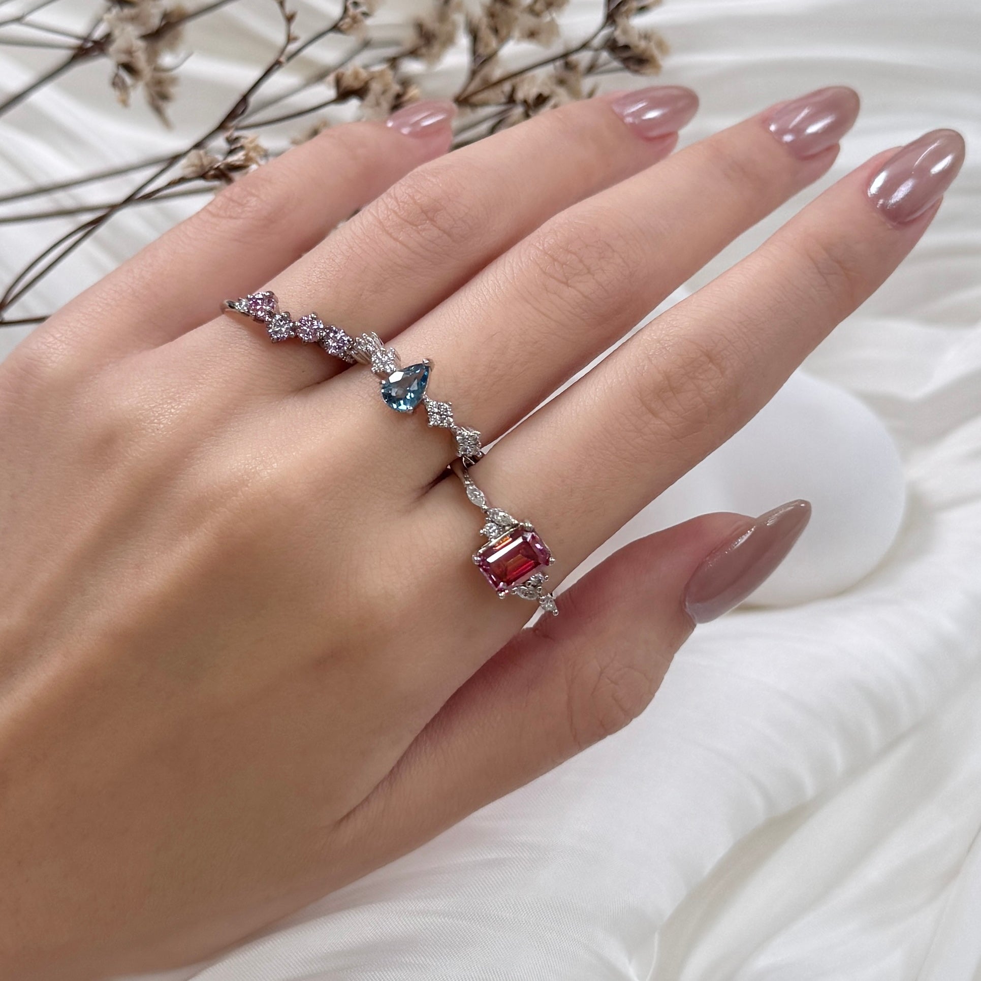 A radiant threesome of gems in pink, blue, and lilac, capturing the gentle glow of daybreak.