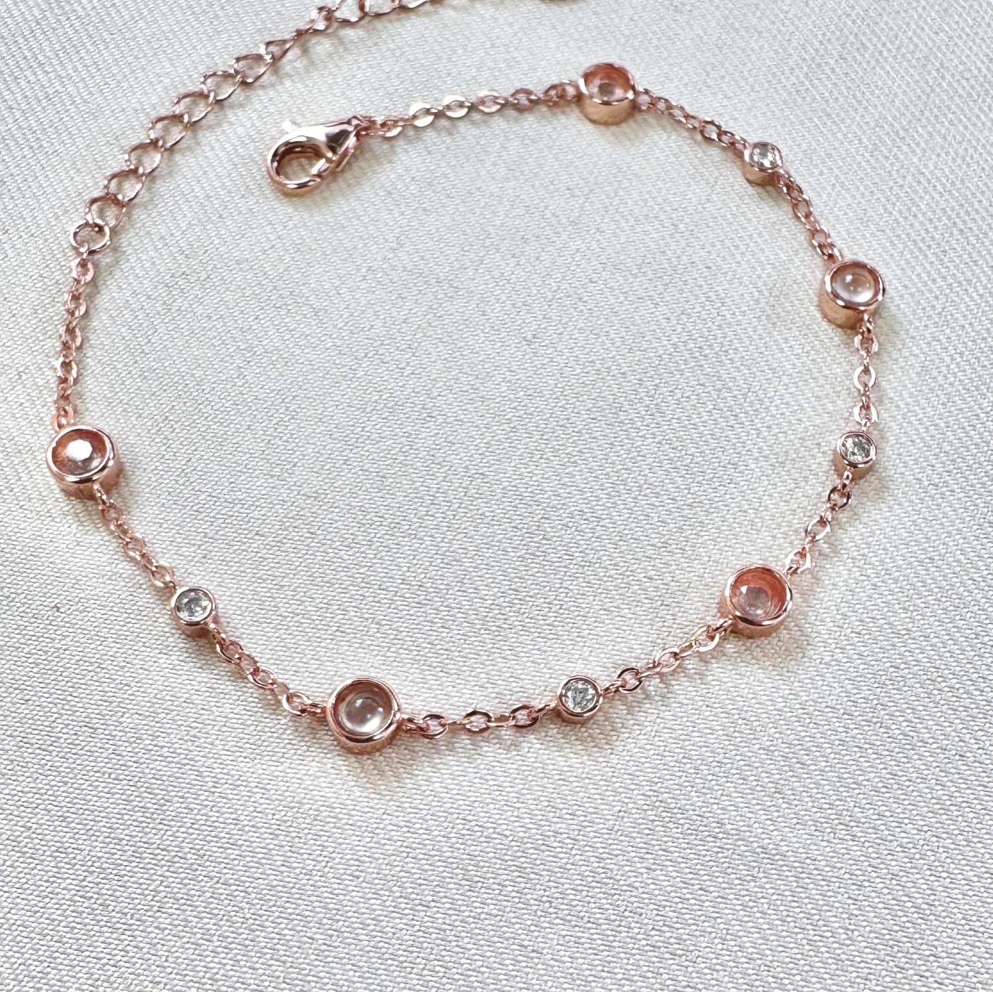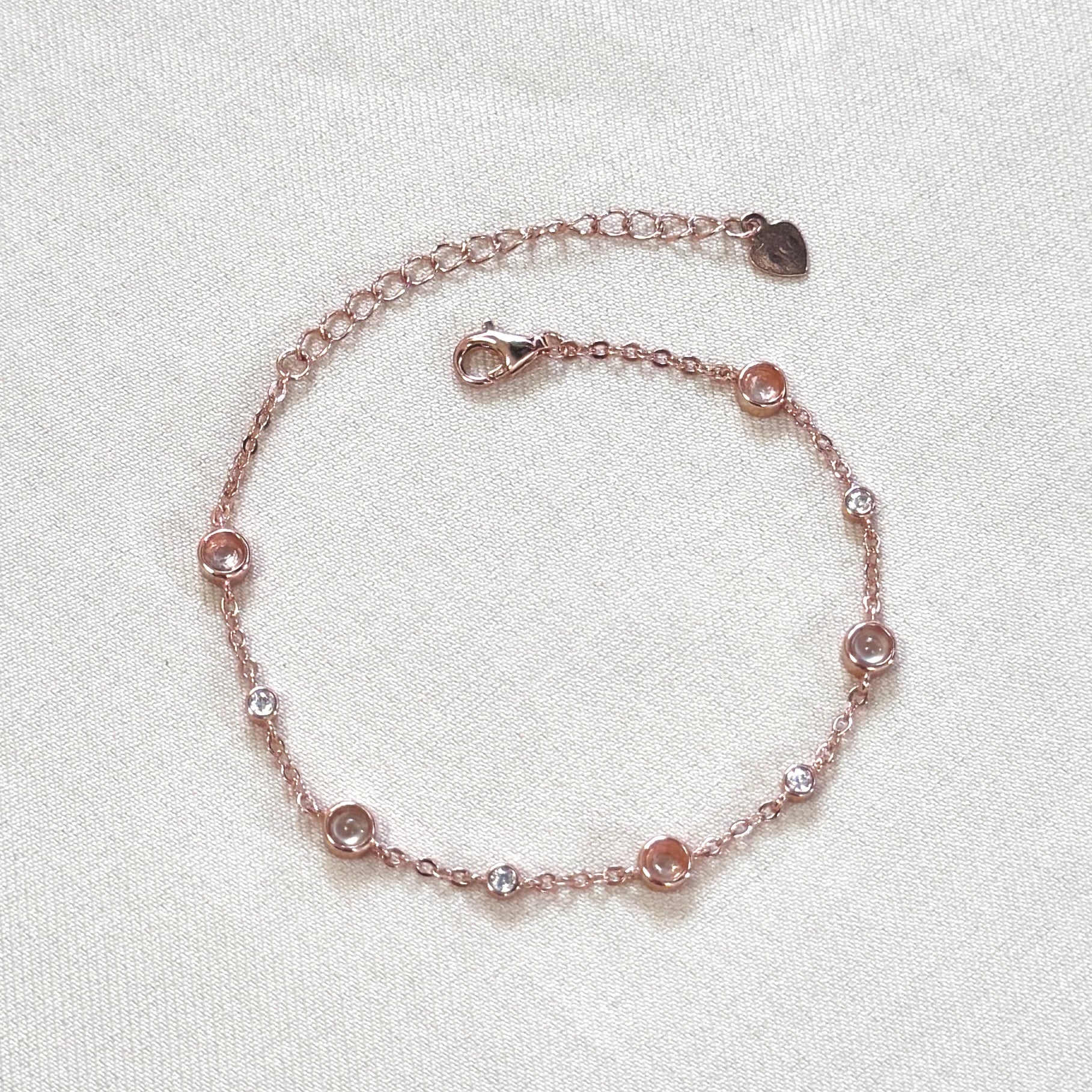 Soft, radiant, and effortlessly elegant, the Elara Jadeite Bracelet is a celestial-inspired piece that embodies grace and tranquility. A faceted rose quartz pendant glows with gentle warmth, while a delicate jadeite charm adds a touch of serenity and balance. Suspended from a rose gold-plated 925 silver chain, this necklace captures the quiet beauty of the cosmos.