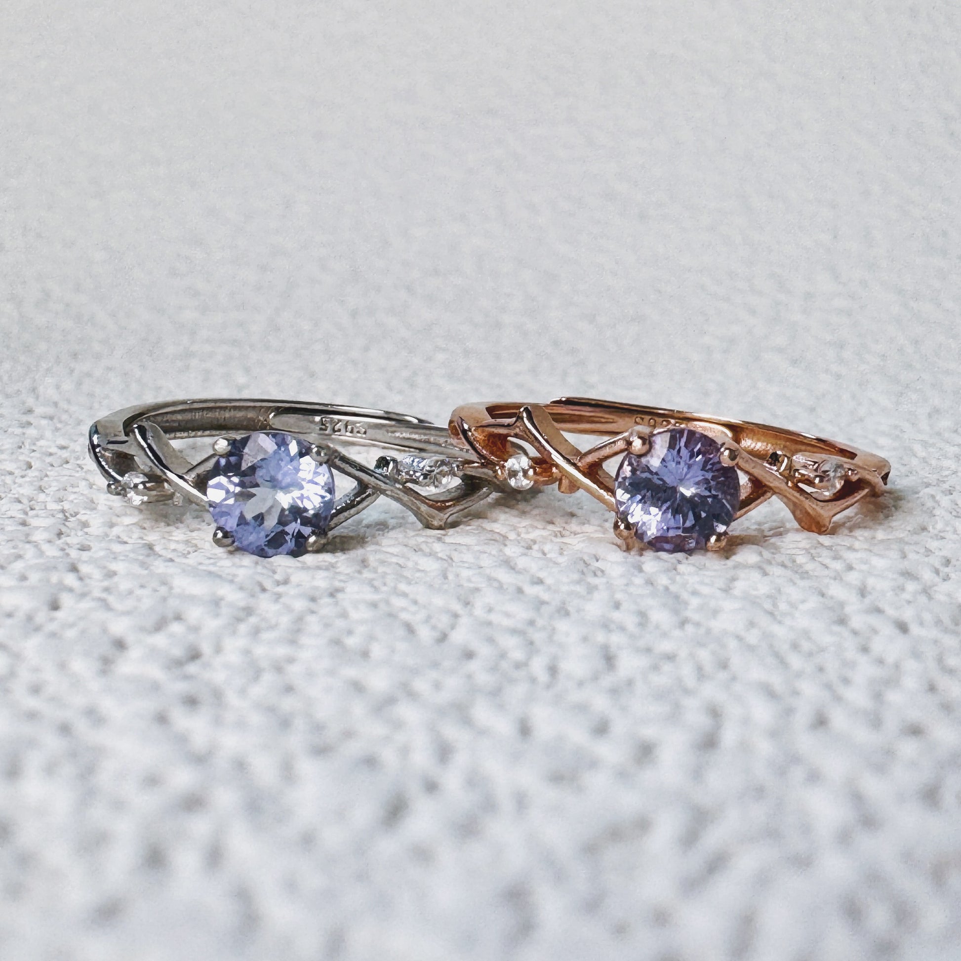 Simple yet striking, the Elune Minimal Tanzanite Ring captures the essence of understated elegance. At its heart lies a vibrant round-cut Tanzanite, celebrated for its mesmerizing shades that shift between soft violet and deep blue. Set on a sleek and polished band—available in radiant rose gold or classic sterling silver—this ring highlights the natural beauty of the gemstone without unnecessary embellishment.