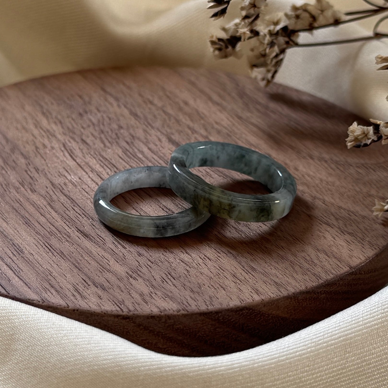 Cool grey jadeite with soft golden-green undertones - the Halcyon Ring carries a quiet calm, like still air before nightfall. Its subtle colour shifts reflect peace, stillness, and understated beauty.