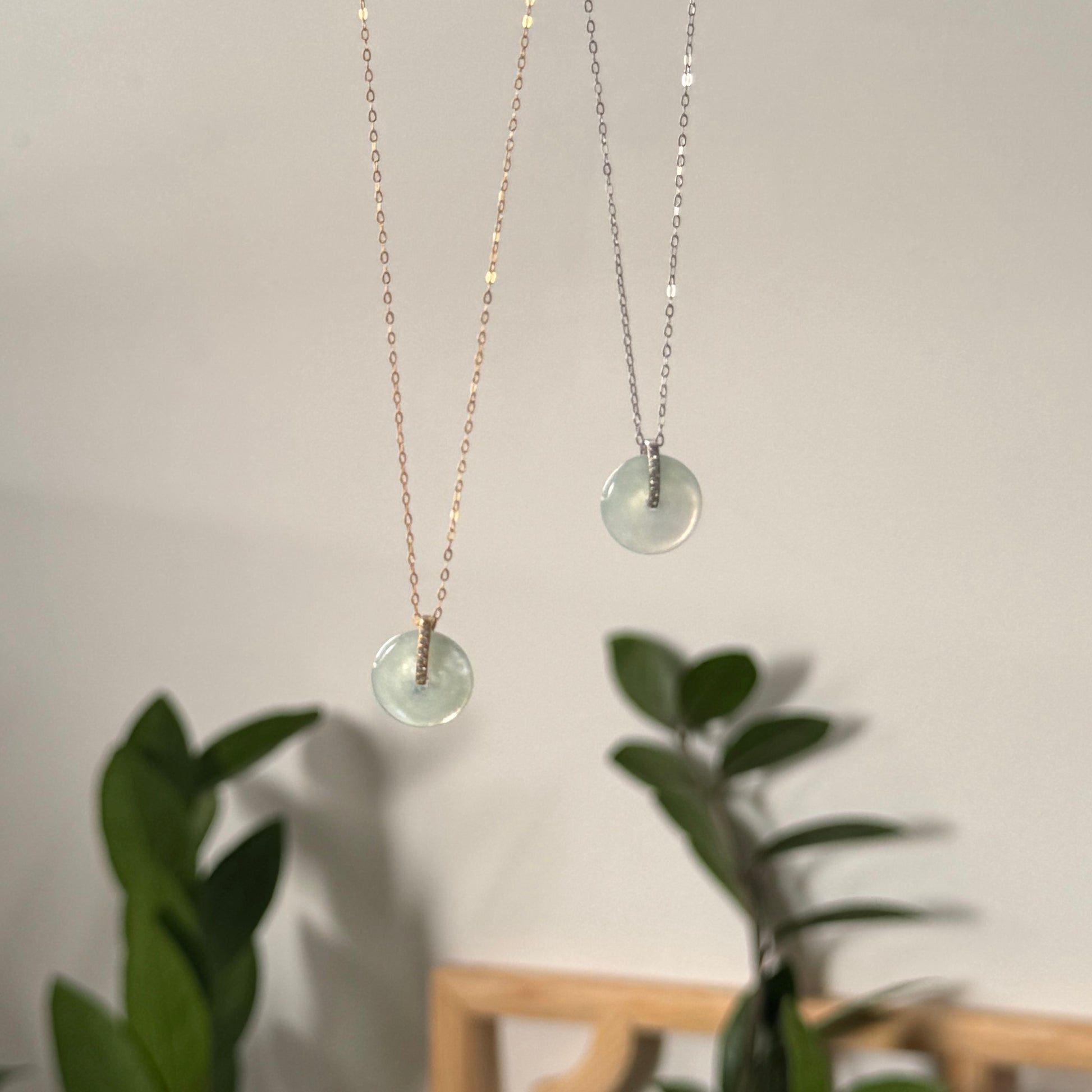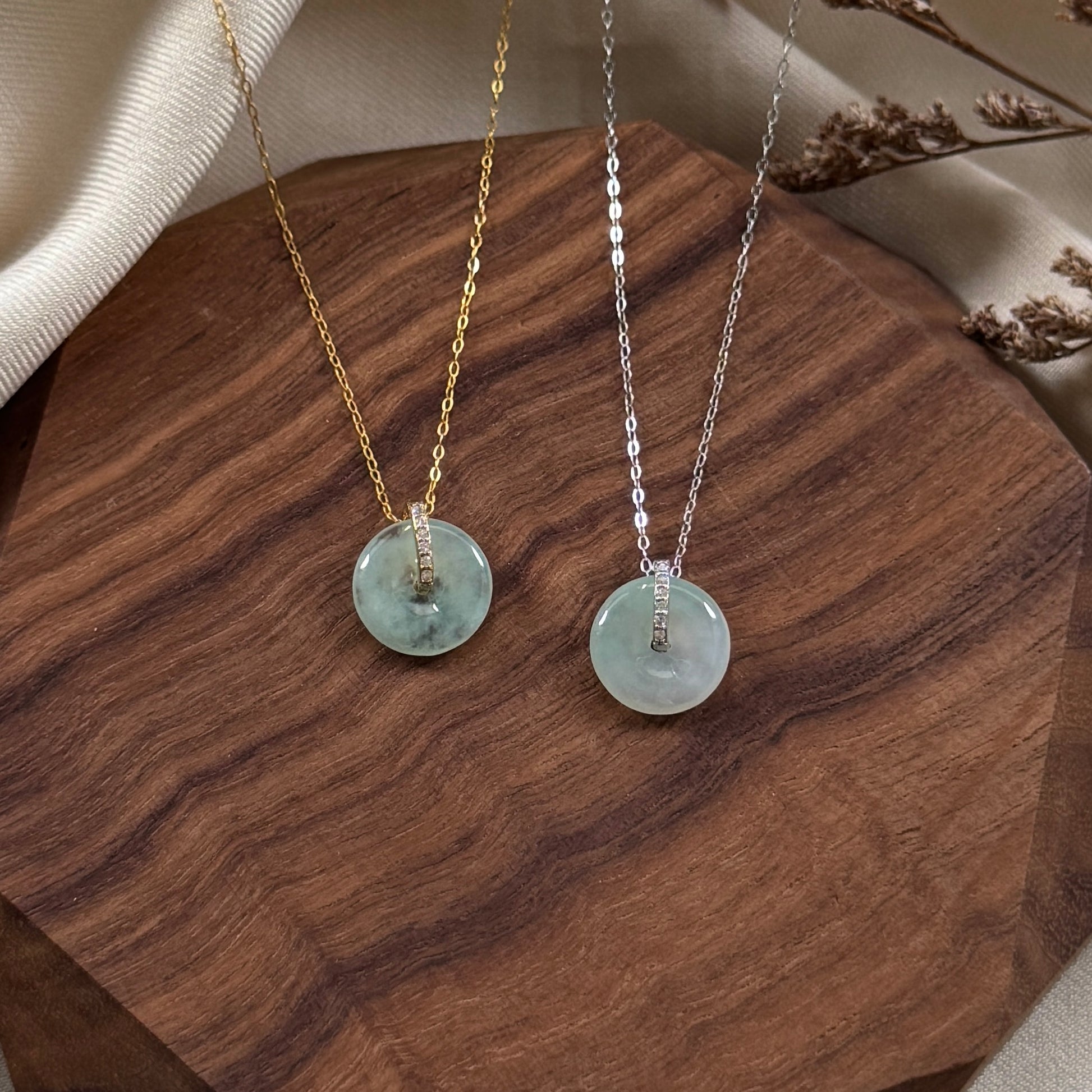 The jade bi shape represents wholeness, protection, and life’s ever-flowing energy. Combined with the wealth-attracting, heart-soothing properties of green jadeite, this necklace is both a minimalist statement and a meaningful talisman — grounding, graceful, and timeless.
