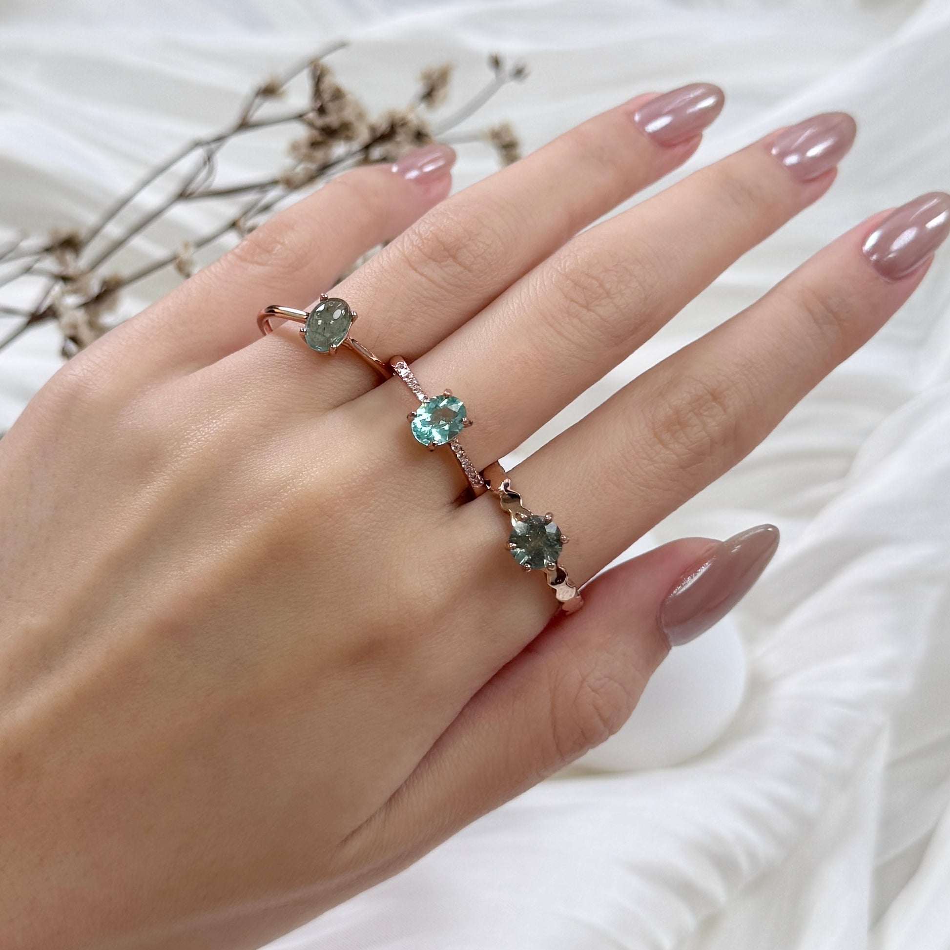 Inspired by tranquil island shores, this trio features teal-green gems that shimmer like sunlit waters.