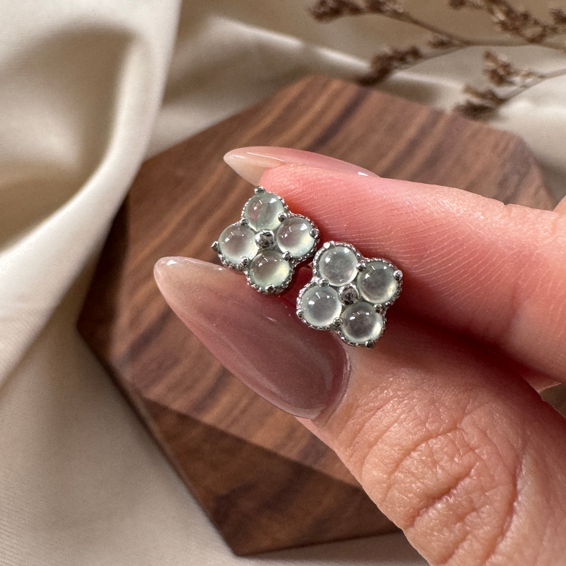 Set in a silver-tone frame, each stud glows softly, catching the light with gentle shimmer. A perfect everyday piece that honours the softness of jade while keeping things polished and modern.