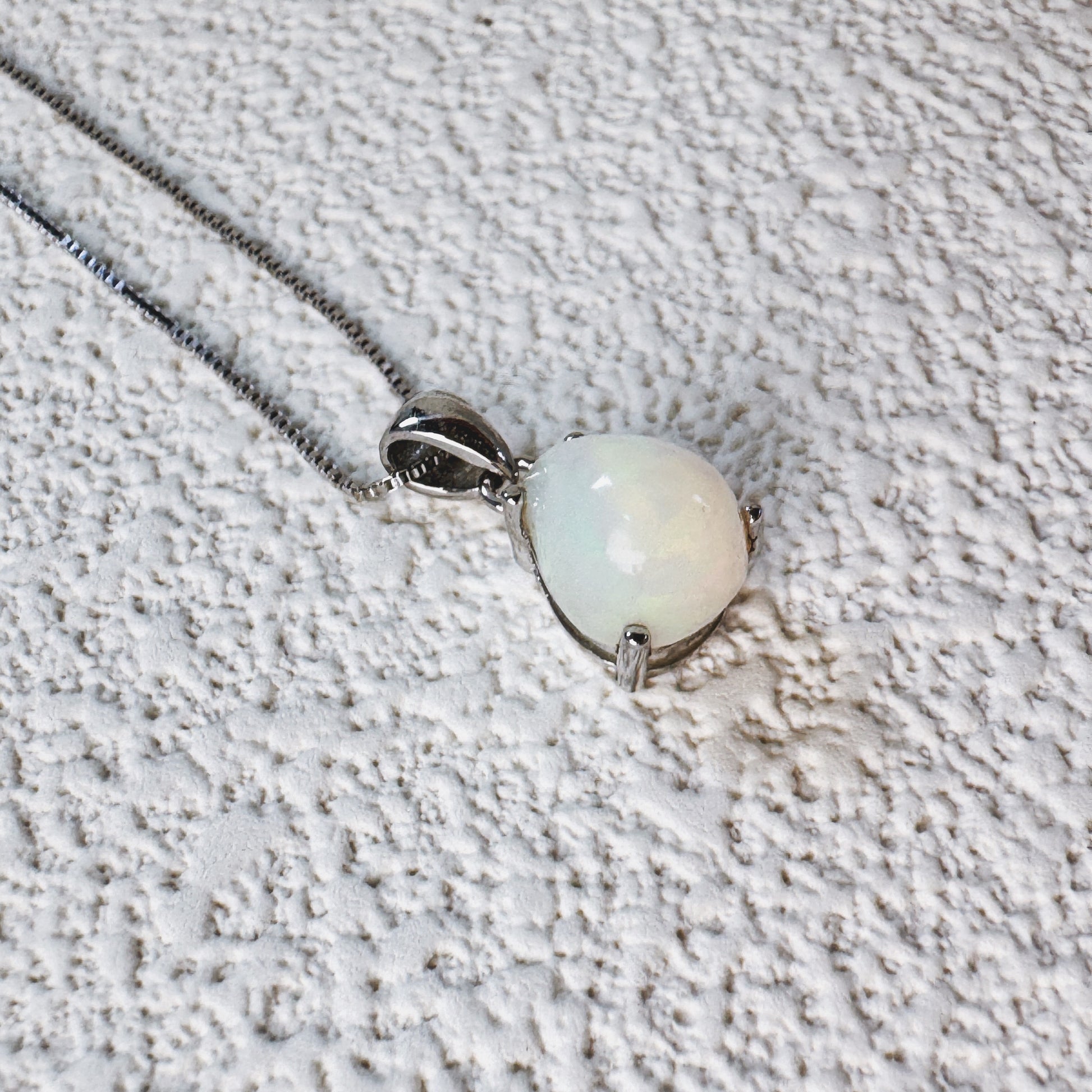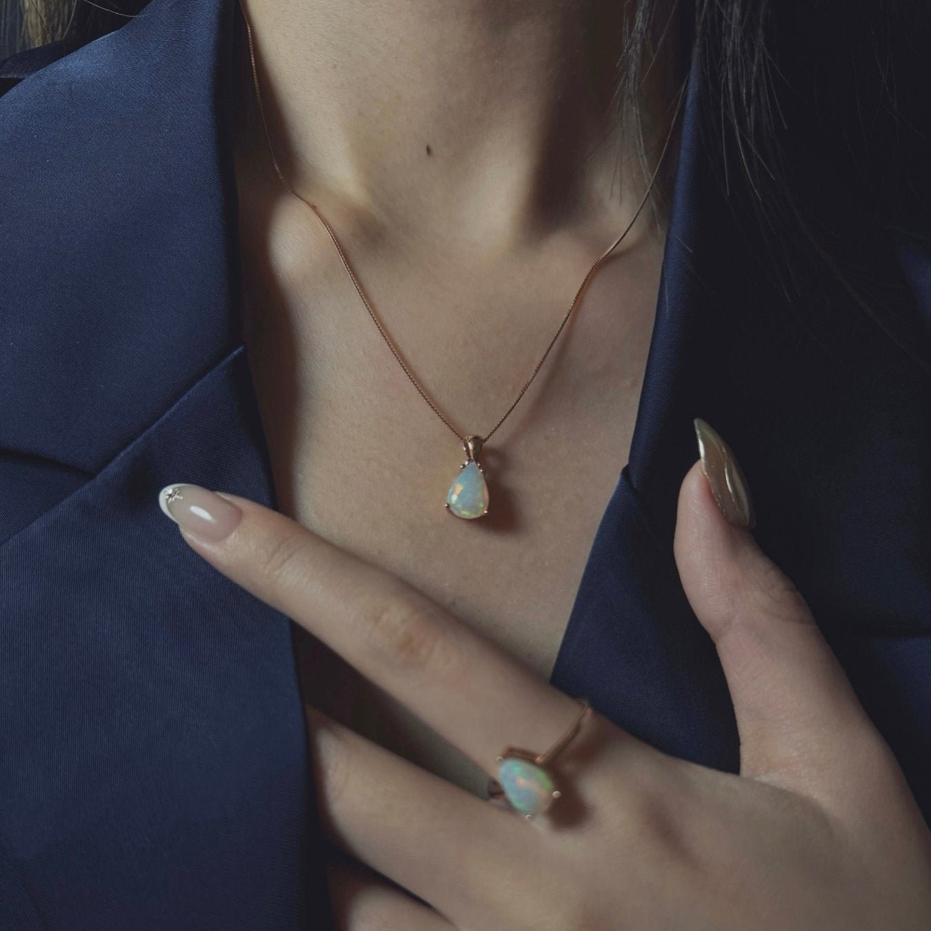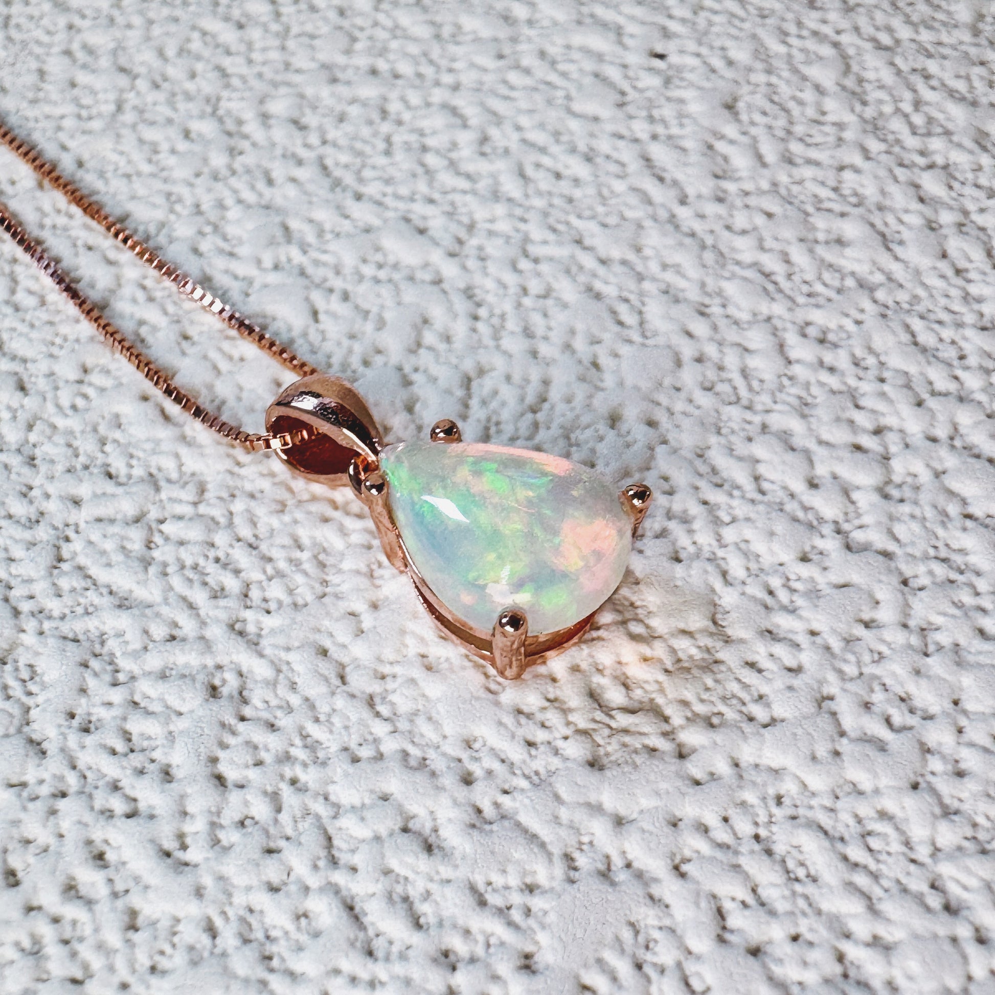 The Luna Drop Opal Pendant is a delicate blend of timeless elegance and celestial beauty. Featuring a teardrop-shaped opal, this pendant captures the soft glow and iridescent play of colors that shift from milky whites to hints of pink and green. Set in a choice of warm rose gold or classic sterling silver, the simple yet refined design allows the opal’s natural beauty to shine through.