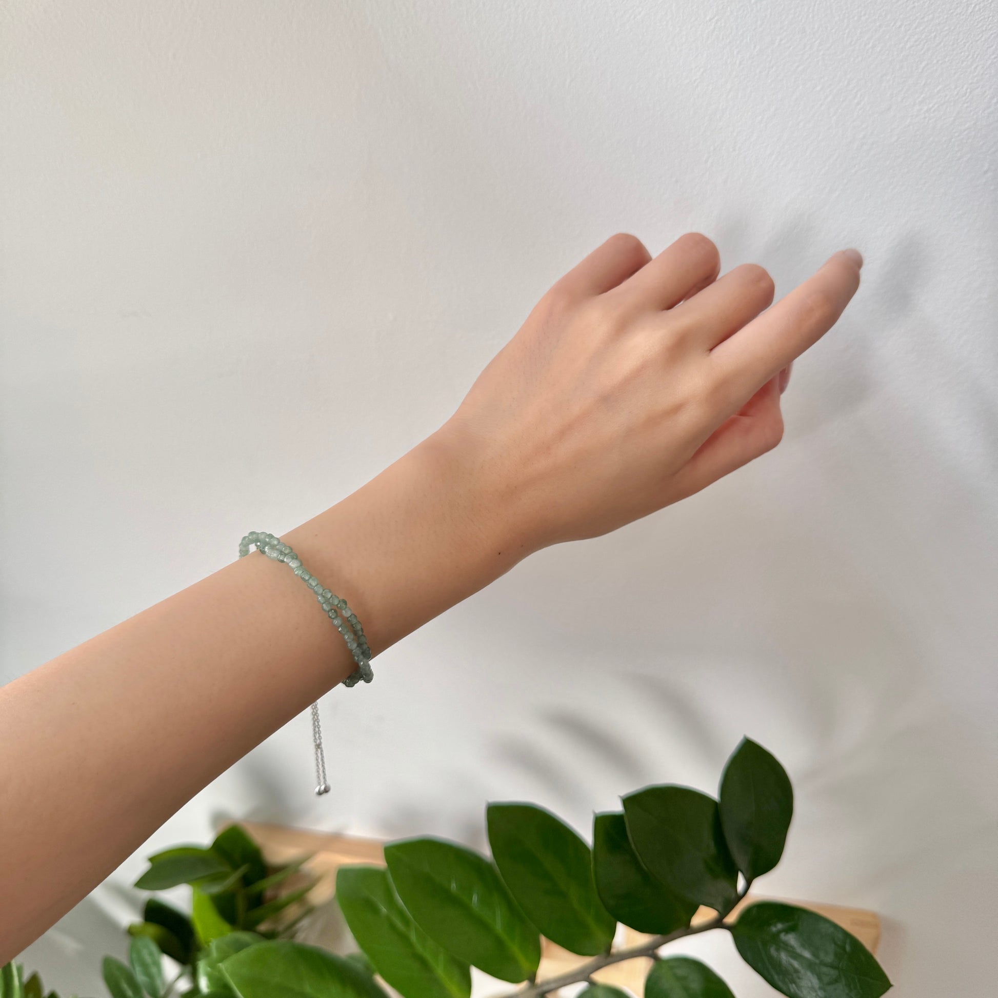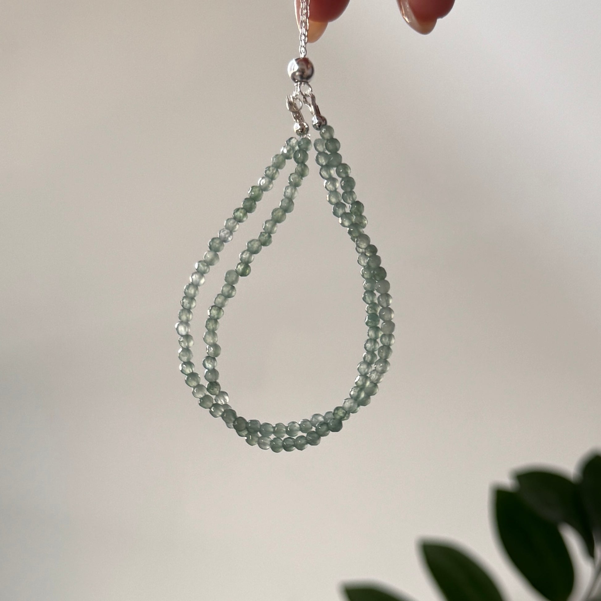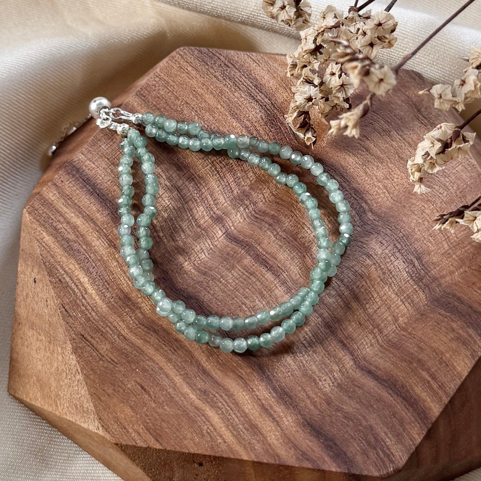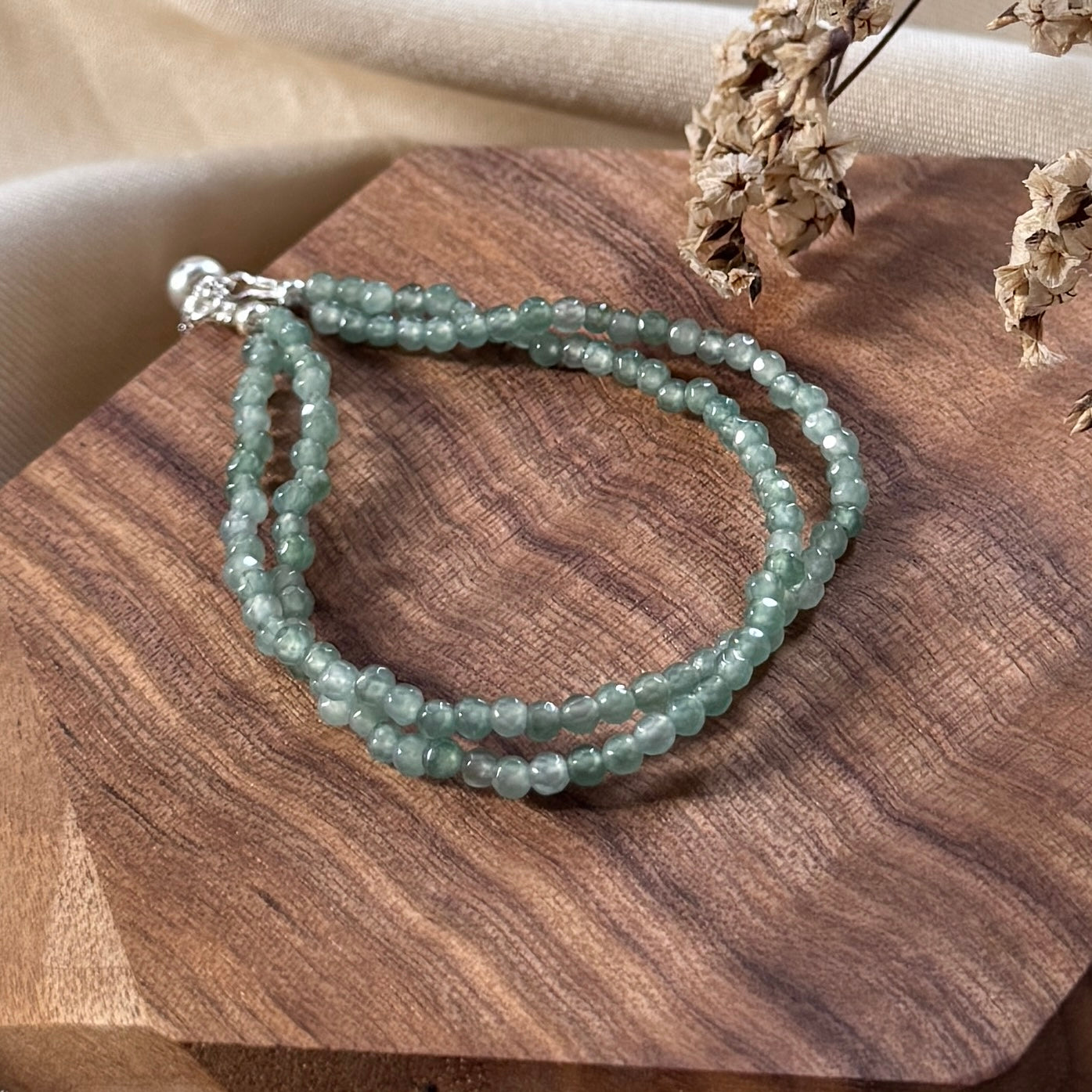 Shimmering like moonlight on deep waters, the Nerelle Bracelet is crafted from faceted teal jadeite beads, strung in a fluid double strand that moves with grace and quiet strength.