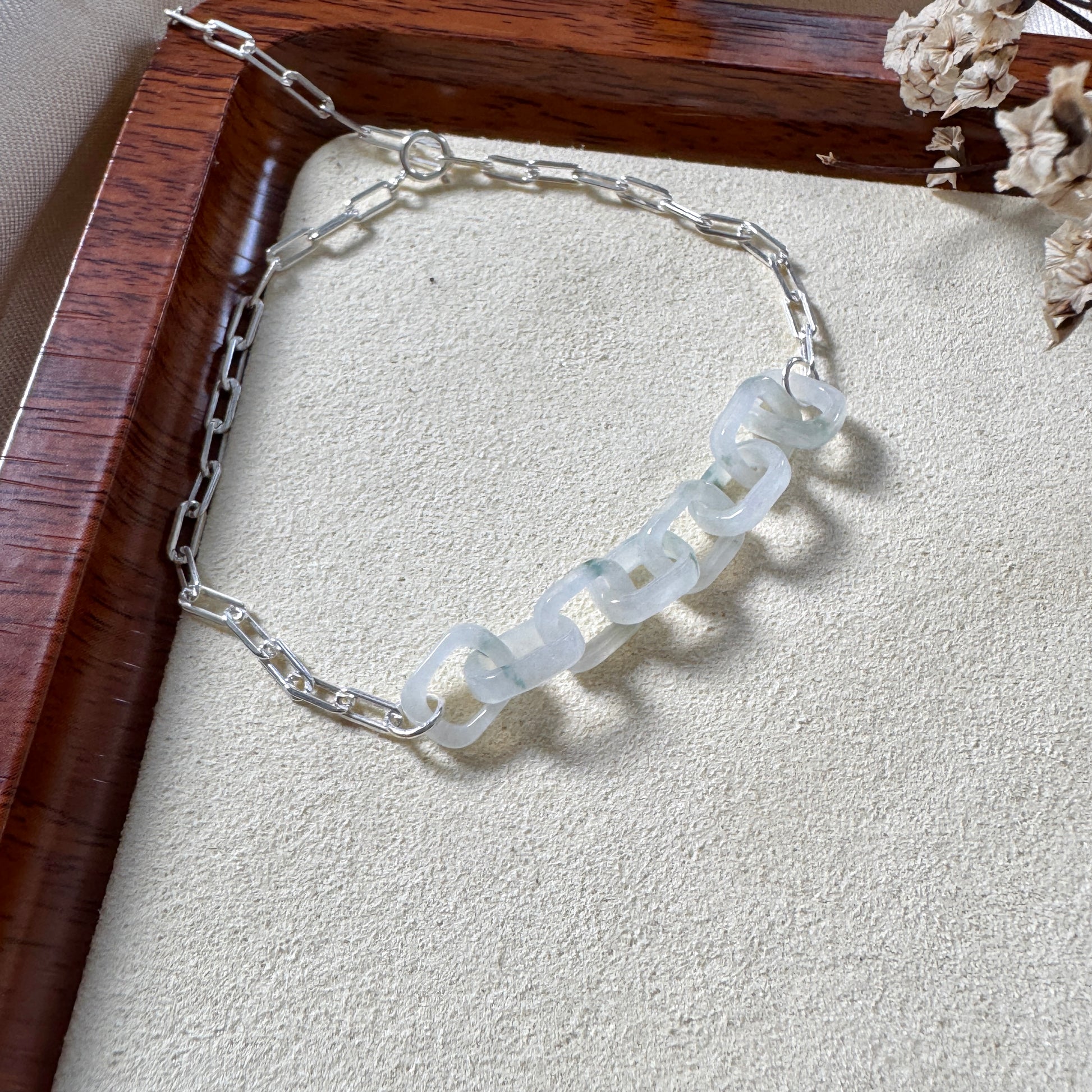 Sculptural and striking, the Nexa Bracelet features a series of hand-carved icy jadeite links, symbolising unity, strength, and connection. Paired with a bold silver chain, this piece merges tradition with contemporary design. Clean lines and intentional form — Nexa is a statement of quiet power and enduring bonds.