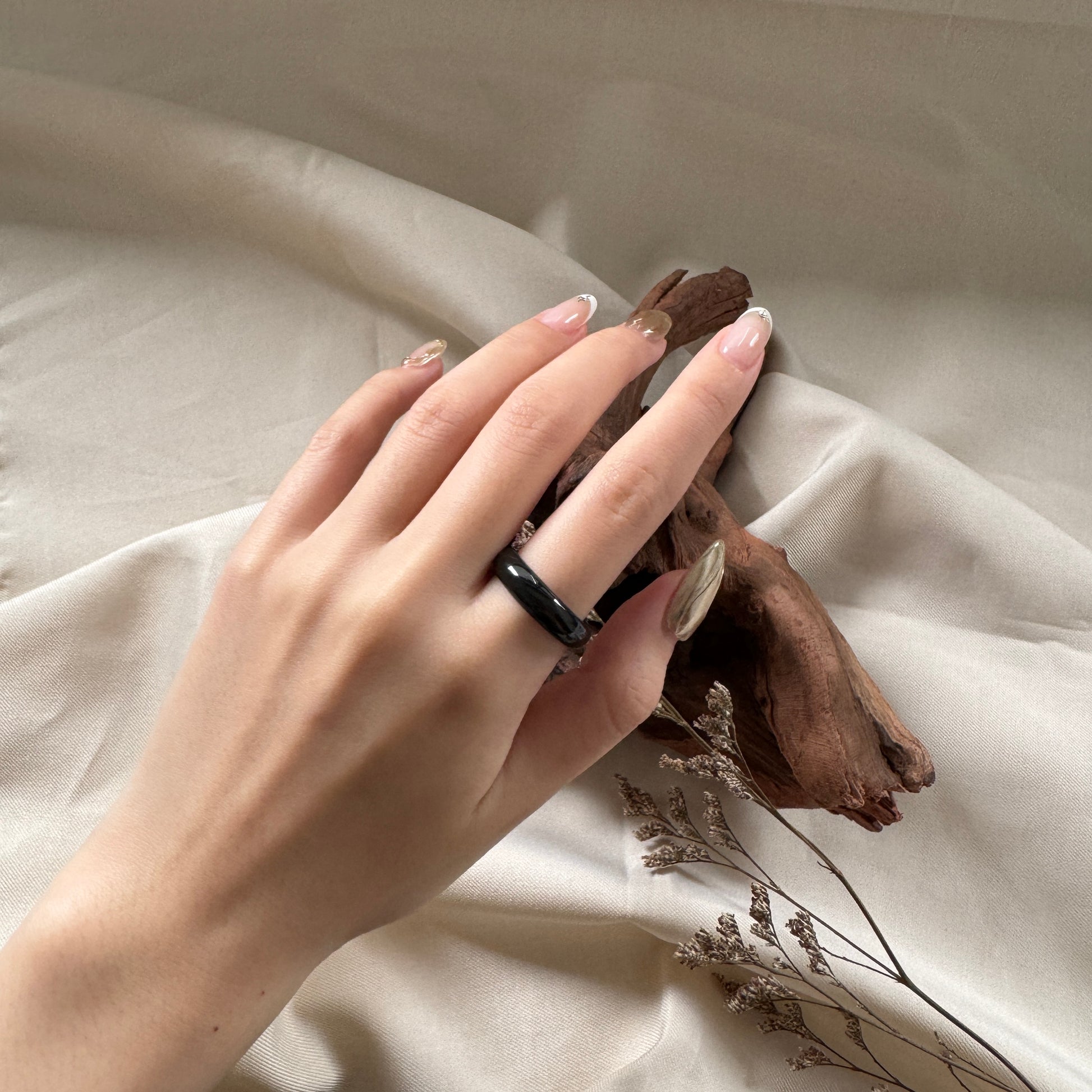 Elevate your style with our Noir Jadeite Rings. Crafted from beautiful translucent Guatemalan jadeite, these black rings add a touch of sleek sophistication to any outfit. With their rich colour and eye-catching shine, they make a perfect statement piece for everyday wear or special occasions. Slip one on and enjoy the unique elegance it brings to your look.