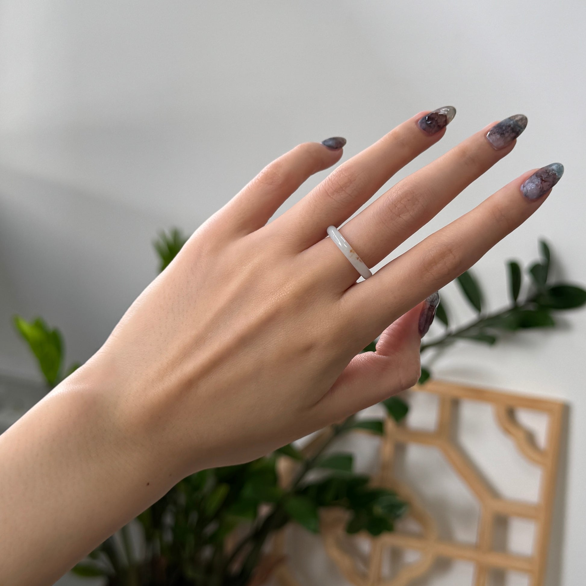 Named after the fragrant flower that blooms in autumn, the Osmanthus Ring features smooth jadeite with natural russet inclusions - reminiscent of fallen petals preserved in stone. Elegant and understated, it captures the warmth and quiet beauty of the season.