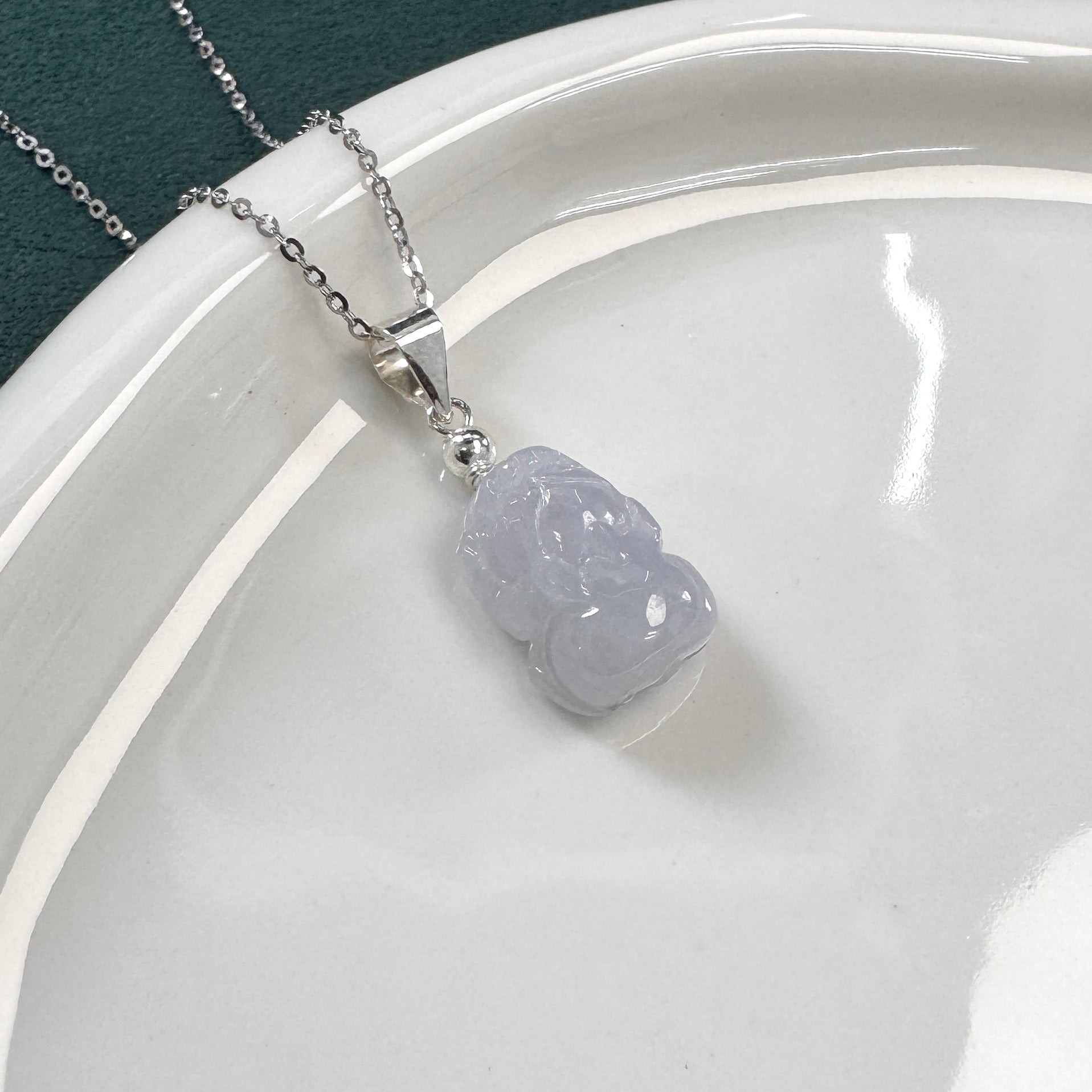 A soft lavender jadeite Pixiu with a cool, understated presence.