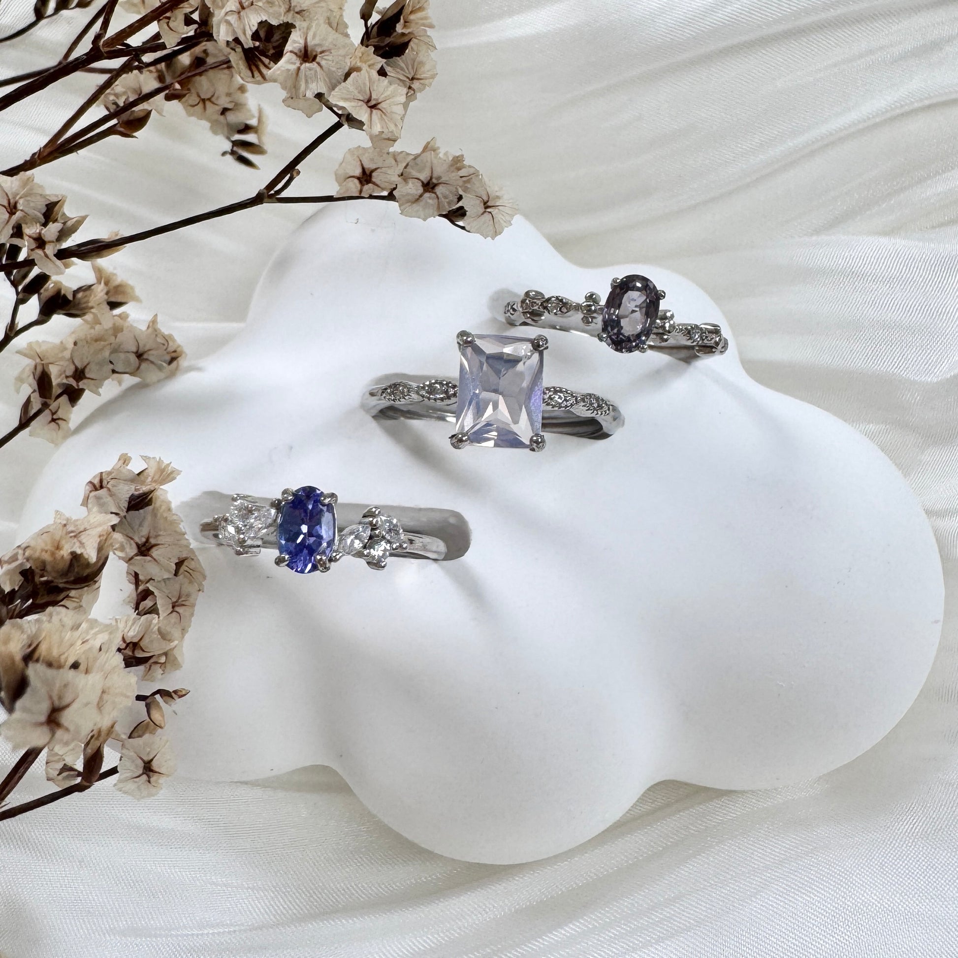 An enchanting blend of spinel, lavender quartz, and tanzanite — a dreamy haze of violet hues.