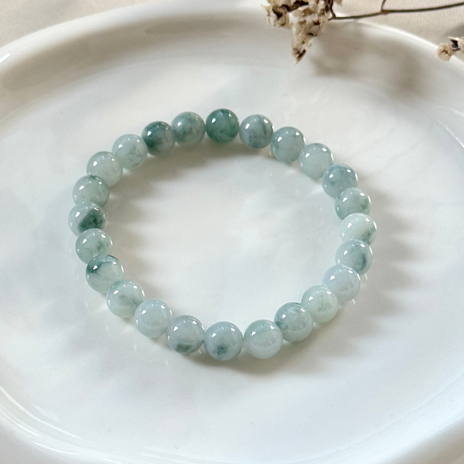Teal-blue jadeite beads with a soft sheen - reminiscent of rippling water and sugared candy drops. Ripple brings a sense of calm elegance to your wrist, with subtle shifts of tone that catch the light like liquid jade. Sweet, serene, and endlessly wearable.